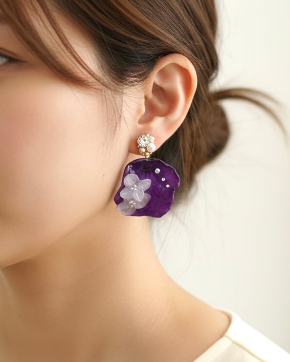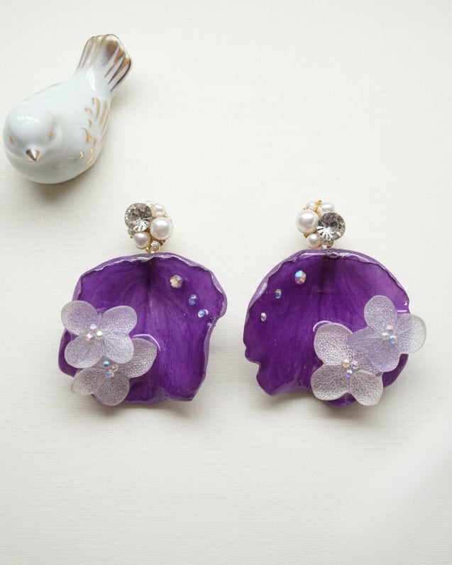 ~深紫のヴィオレットと紫陽花が織りなす繊細美~ ビジューイヤリング