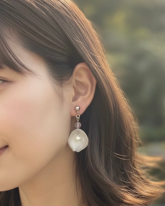 ~自分を慈しむ時間に寄り添う、魔法のひとひら~ ローズペタルとモルガナイトのピアス